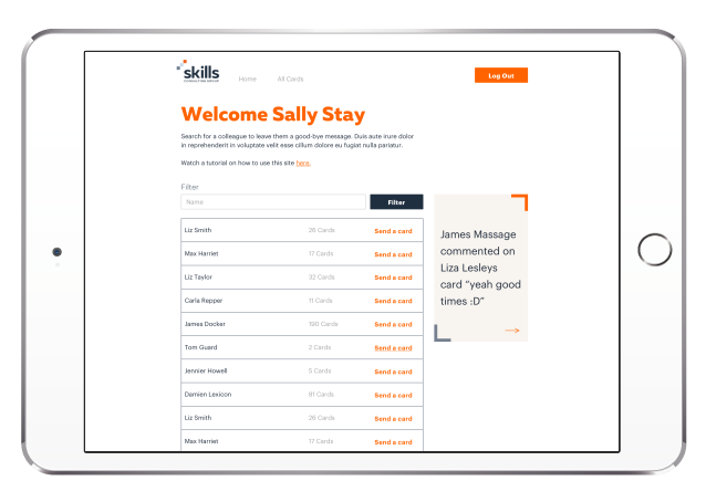 Skills Consulting Group faced major organisational changes, with large groups of employees departing. They required a customised platform for meaningful staff goodbyes within an impossibly short one-week timeline.